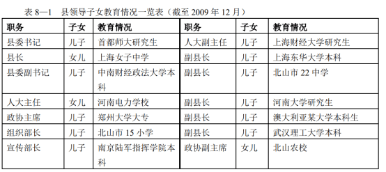 《中县干部》中关于县领导子女教育情况一览表