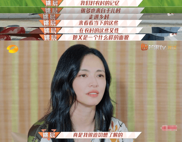 对于这一点,姚晨也坦言很迫切想要了解真实的乡村女性会是什么状态,因为我们的印象和记忆都是有偏差的。