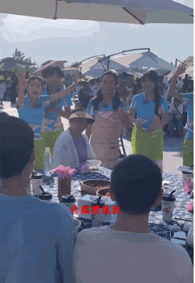 8月底的湖南,地面温度超过43度,空气热到烫脚。这些女生们在烈日下烹饪大席,每个人都全情投入。当天的食客都有遮阳伞,这些女性哪怕妆容早已被汗水浸染,哪怕没有镜头追随也在细心追问老乡们饭菜是否可口,这是一种过往荧屏里很稀缺的生命力,就和烈日下的农田野花一样,不屈不挠又很亲切。
