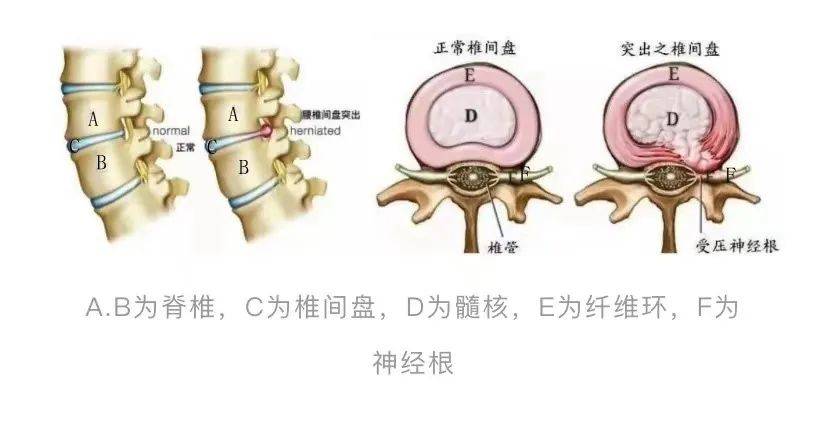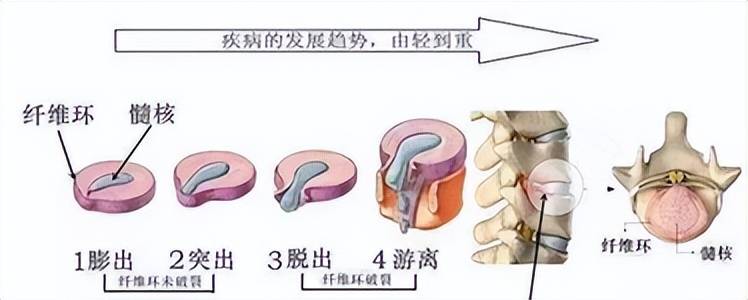 椎间盘旁边就是重要的神经根和脊髓。如果突出来的“馅儿”比较少,一般问题不大,甚至没啥感觉;但如果突出来较多,就很可能刺激甚至压迫到神经根或脊髓,因此,有的腰椎间盘突出症患者,会出现下肢的麻木、疼痛等。