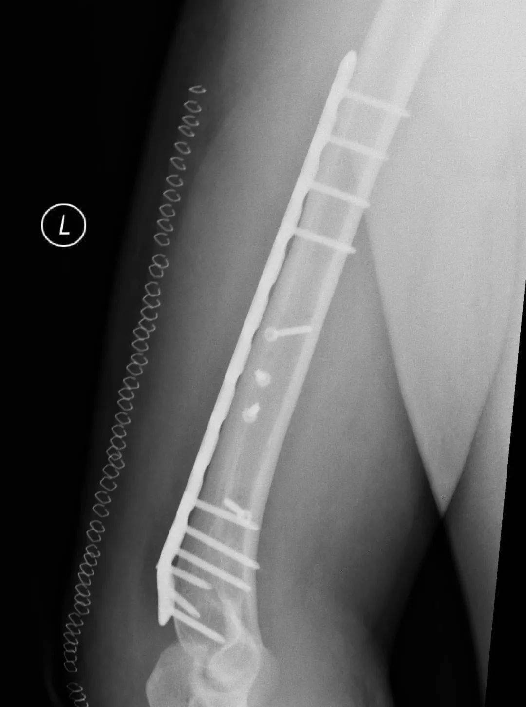 肱骨干骨折的治疗方法包括非手术治疗、闭合复位髓内钉内固定术和切开复位钢板螺钉内固定术等多种方式。采用非手术治疗时,可对患肢进行悬垂石膏固定或行闭合复位后使用上臂U型石膏固定,2-3周后解放肘关节,使用功能支具固定10-12周。由于扳手腕导致的肱骨干骨折几乎均为肱骨远端三分之一螺旋形骨折,闭合复位髓内钉内固定术不适合这类骨折,切开复位钢板螺钉内固定术是这类骨折的最佳的手术治疗方式。