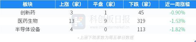 作为对比,本周创新药、医药生物、半导体设备二级市场表现如下表所示。