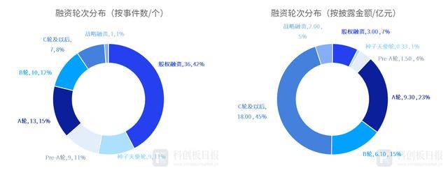 从投资轮次来看,除股权融资外,本周A轮融资事件数最多,发生13起,占比约15%;其次是B轮,发生10起,占比约12%。从各轮次获投金额来看,C轮及以后披露的融资总额最高,约18亿元;其次是A轮,约9.3亿元。