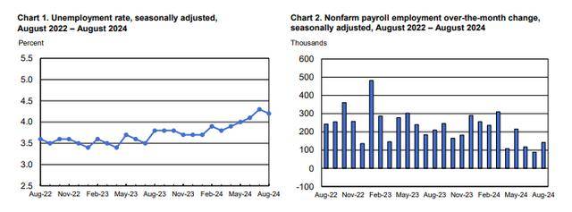 周五(9月6日)美股盘前公布的数据显示,美国8月份非农就业人口增加14.2万人,高于前一月的8.9万人,但不及市场预期的16万人;失业率回落0.1个百分点至4.2%,与预期一致。