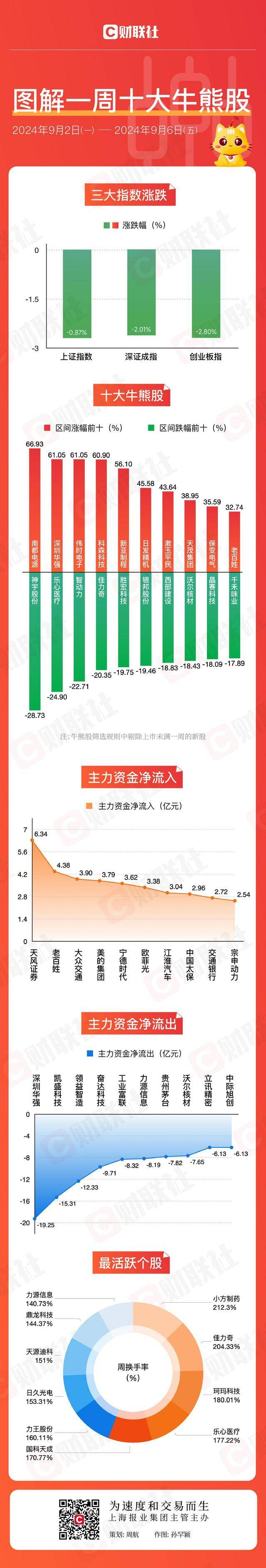财联社9月7日讯,本周A股三大指数继续震荡调整,其中沪指创半年新低。板块方面,医药商业、保险板块逆势上涨,证券板块异动拉升,而半导体、消费电子板块则出现一定幅度的回调。