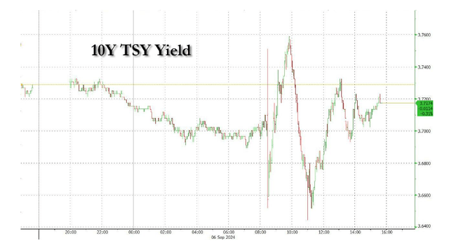 唯有债券表现较为坚挺,10年期美债收益率先是大幅下跌,然后飙升,然后再次下跌,最后收于盘中高点附近。