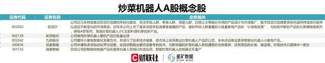 据财联社星矿数据显示,A股中有苏泊尔、九阳股份等5家公司布局炒菜机器人。其中佰奥智能在回复投资者时表示,与斯坦福的炒菜机器人有相通部分也有差异,还有菜品的分类、输送等,炒菜技术只是其中一部分;而拓邦股份方面表示,公司商用炒菜机器人整机产品已批量出货。