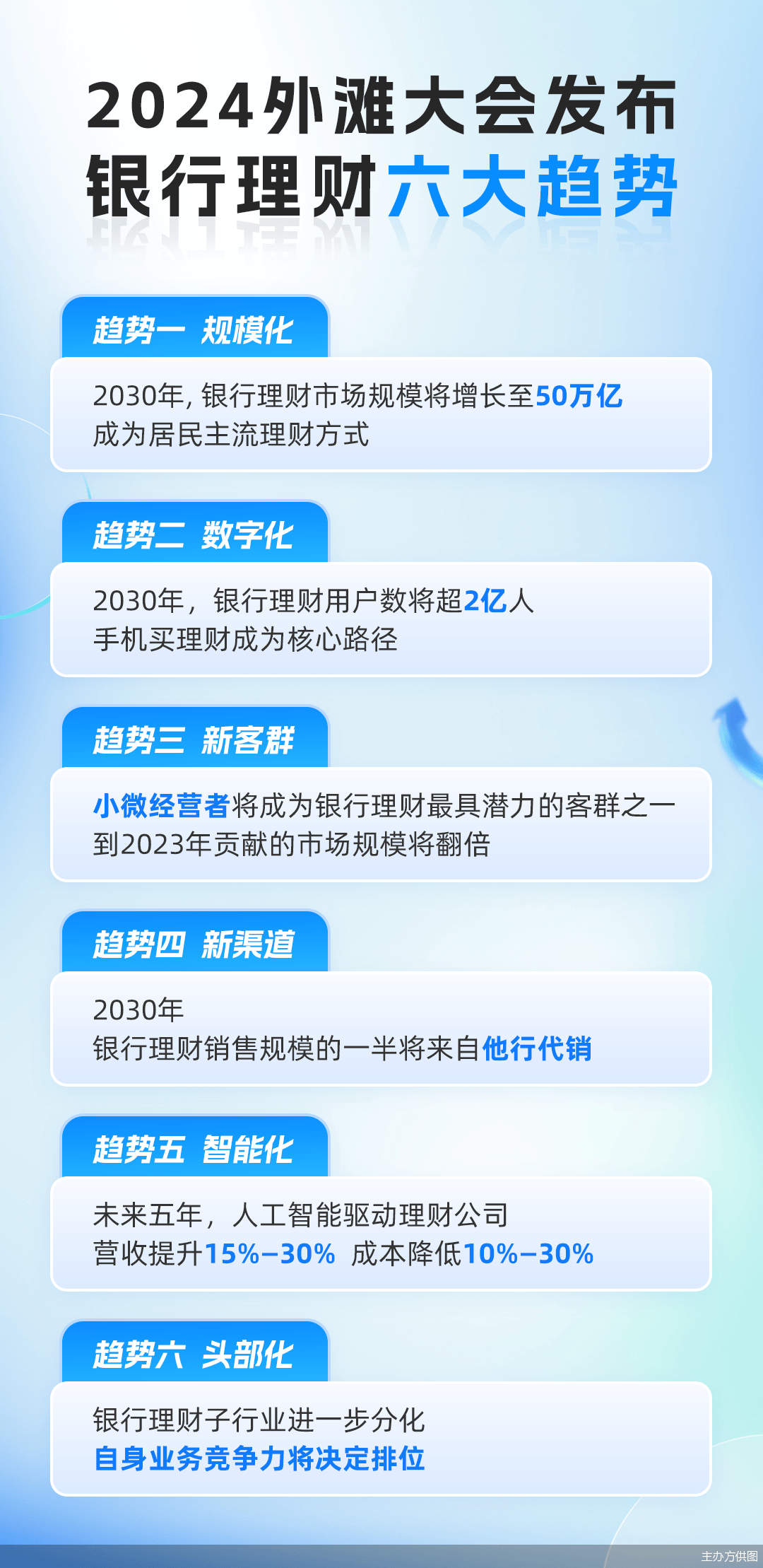 正如2024外滩大会上发布的银行理财六大趋势:新的互联网代销渠道、小微经营者等新客群以及AI大模型等新技术的应用将重塑银行理财的未来。