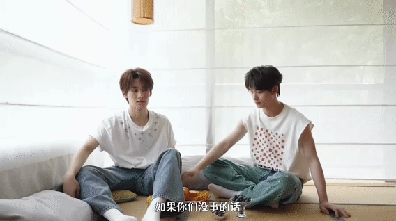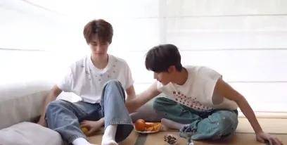 在某节目里,丁程鑫和张真源坐在一起玩耍。