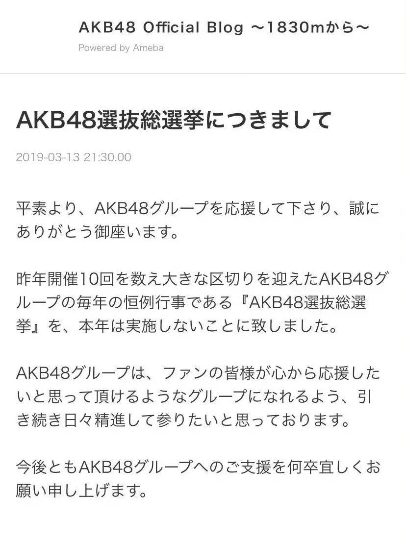 因此,不管是日本还是韩国,养成模式转型也早早提上了日程。比如同为公开养成的AKB48,早在2019年便宣布取消总选举,如今单曲C位也多以运营、制作人秋元康进行选择。