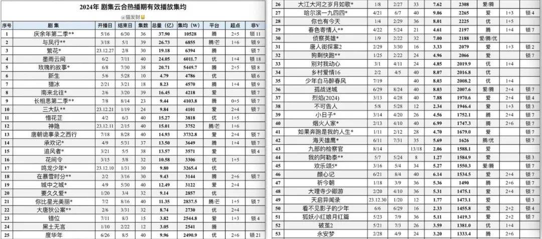 大力推行“降本增效”的两年里,剧集市场看似并无大碍,虽然砍掉了大量腰部剧,头部剧照样川流不息地拍着。但整体内容制作上,却呈现出强烈的保守倾向,资金与资源都在“熟人”手里内部循环。