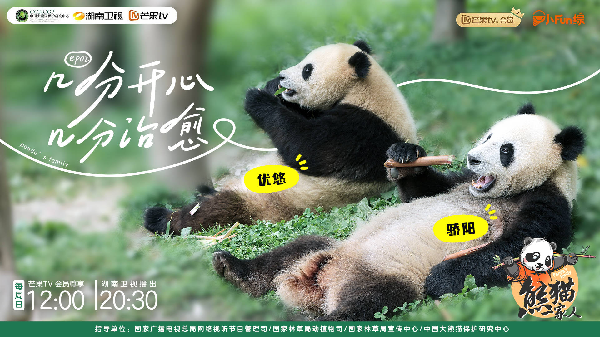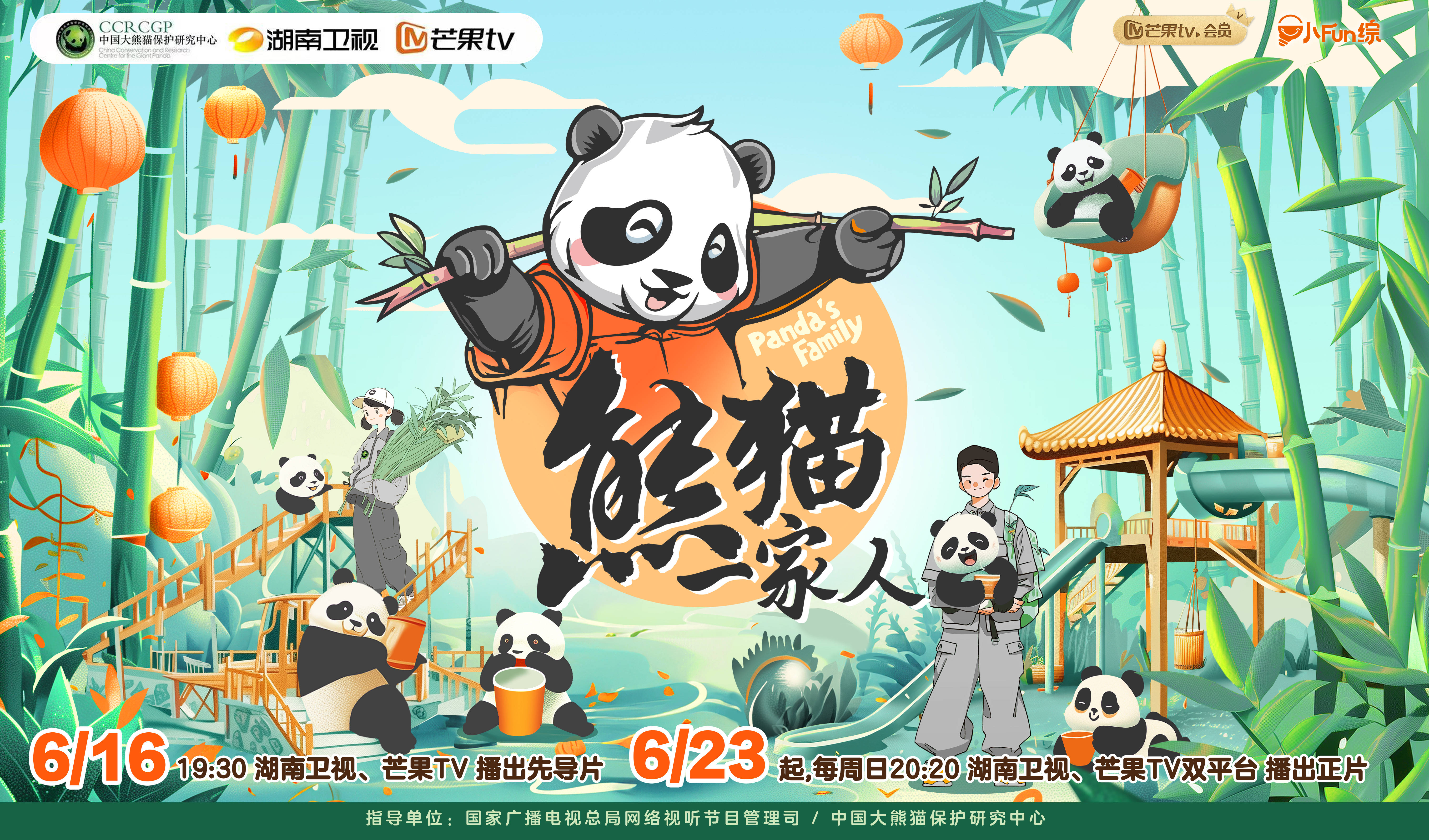 6月12日,湖南卫视、芒果TV联合中国大熊猫保护研究中心共同推出《福到!福到!福宝见面会》全球直播,作为大熊猫“福宝”回国后的第一次公开亮相,本次直播引发热烈反响,新媒体平台端口累计直播观看量达2000万,海外账号同步直播浏览量破百万,收获全网热搜超180个。紧随其后,科普纪实节目《熊猫一家人》于6月16日亮相,双语纪录片《熊猫叙事》6月24日起全球上线。其中,《熊猫一家人》以“福宝”的新家——中国大熊猫保护研究中心卧龙神树坪基地为核心取景框,邀请大家见证“鑫鑫”、“鑫鑫”崽一家,“蕊蕊”、“蕊蕊”崽、“贤贤”崽一家,“骄阳”、“优悠”一家妙趣横生的生活,以此走近中国的大熊猫保护事业及熊猫饲养员的日常。