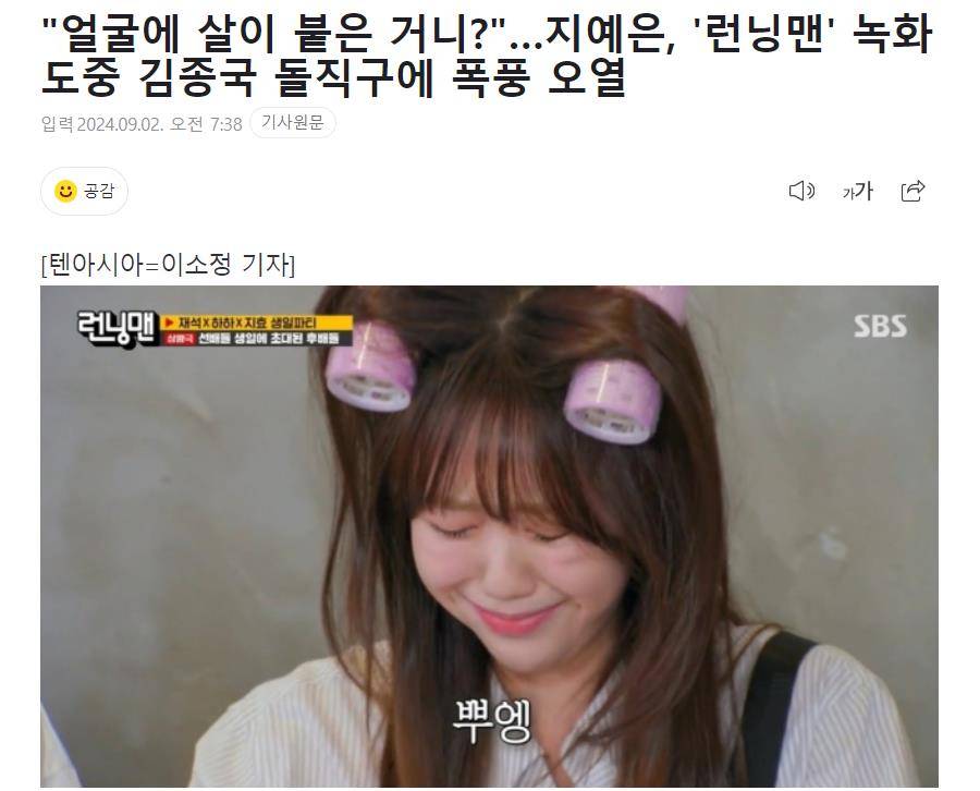 9月2日,有韩国媒体报道,韩国知名艺人,金钟国问女演员池艺恩,你的脸是不是胖了一些?池艺恩无言以对,最后假装哭泣。