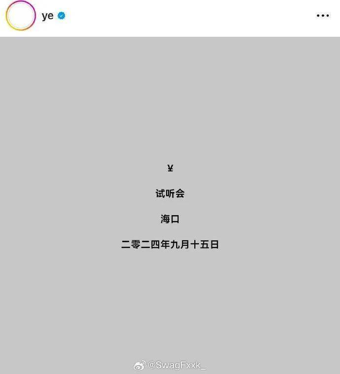 Kanye本人又在社媒官宣了海口试听会!这次是纯中文版!!