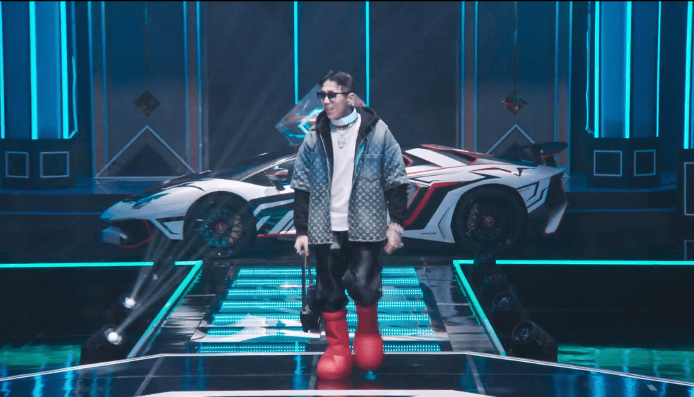 只见一个网红开着一辆兰博基尼就上台了。