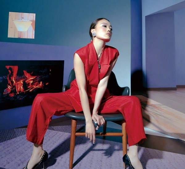 从照片中可以看到,容祖儿身穿红色套装,马甲搭配长裤,坐在椅子上看着不知名的方向,她漫不经心的样子像是睥睨天下的王者,她坐在那里什么也不说就已经是号令千军的女王,散发着成熟女人的别样性感。