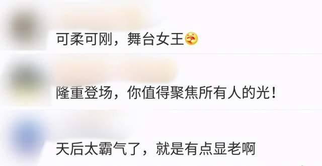 网友们看到这组照片之后也纷纷在评论区表达自己的看法,有网友赞容祖儿“可柔克刚,舞台女王”,也有网友直言“隆重登场,你值得聚焦所有人的光!”,还有网友表示“天后太霸气了,就是有点显老啊”。