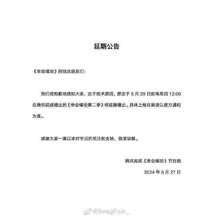 热搜第一!新说唱综艺《幸会嘻哈2》官宣延期!