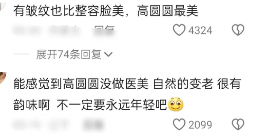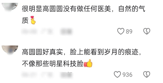 所以,还是不要跟风动脸,医美脸其实没有自然脸高级耐看,像高圆圆这样优雅的,能够自然地接受衰老,能够直面皱纹的女明星,实属难得,她的状态才是观众想看到的,一张原装鲜活的脸,胜过一切科技,希望大家不要容貌焦虑,自然美就是最美的。