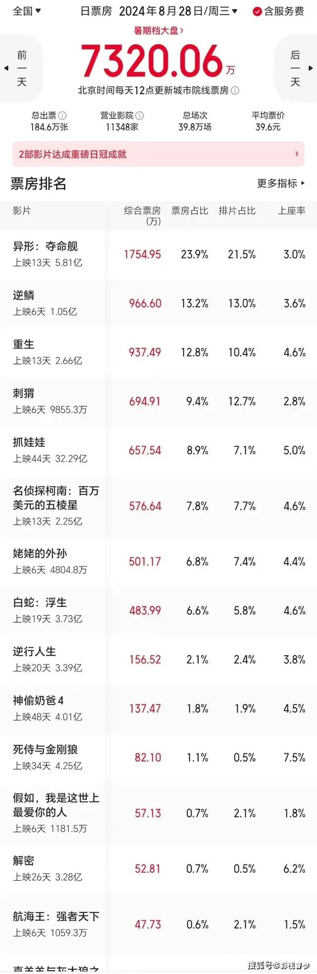 今年的暑期档接近尾声,票房表现也跌入到谷底,工作日周三报收6893万,连7000万都不到,距离破亿都有难度。