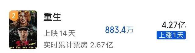 而在这两天一片惨淡的情况之下,《重生》的表现就算是相当良好的。因为与其他几部电影占据着很多的排片,却有着很心酸的票房倒挂相比,该片以微弱的排片却拥有了呈相反态势的票房。另外,预测票房逐渐上涨。超过了摩拳擦掌曾经的暑期档王者陈思诚的《解密》以及徐峥的《逆行人生》。因此,相较于人家的惨淡,它倒不是票房第一,但心情还蛮不错,也能算得上是以小搏大的一个典例了。