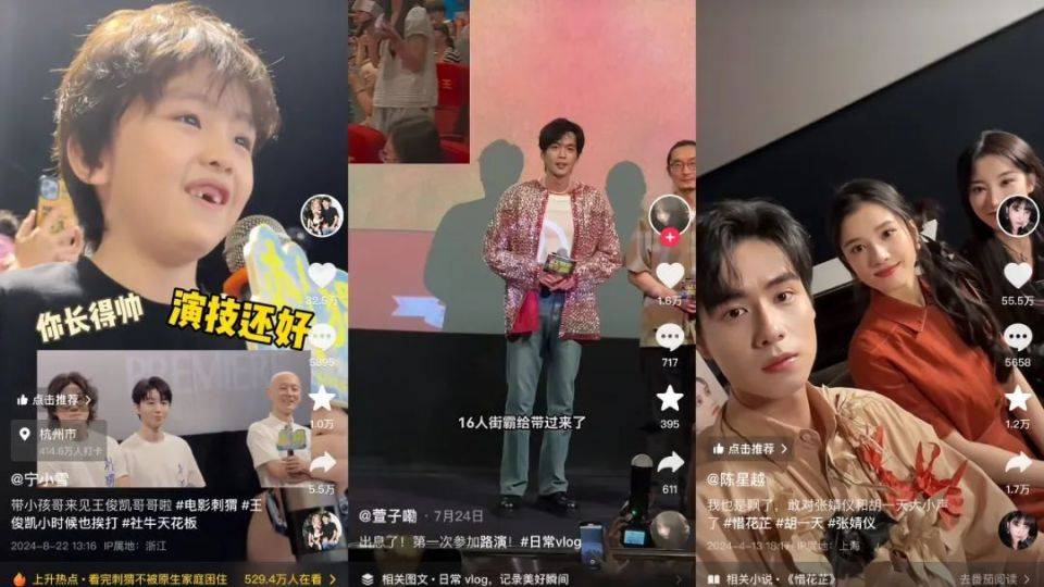 随着抖音、小红书、B站等各路新兴社交媒体快速崛起,博主成了最新的一批“采访者”。他们或许出现在电影路演现场借着采访名义输出土味情话,或者来到拍摄间与主创们合拍手势舞, 又或者教明星们说方言、跳热门舞蹈。