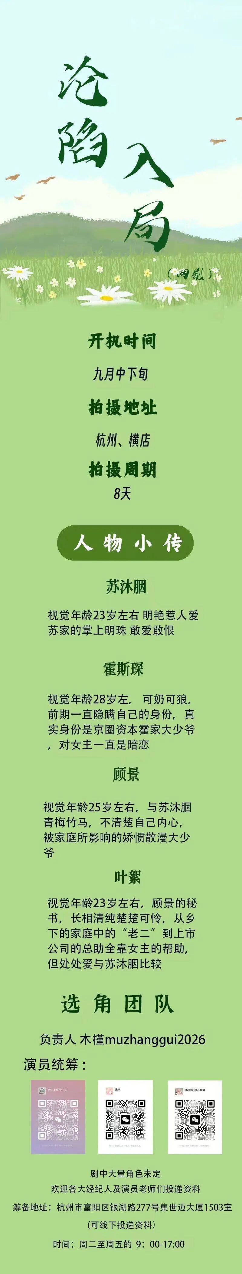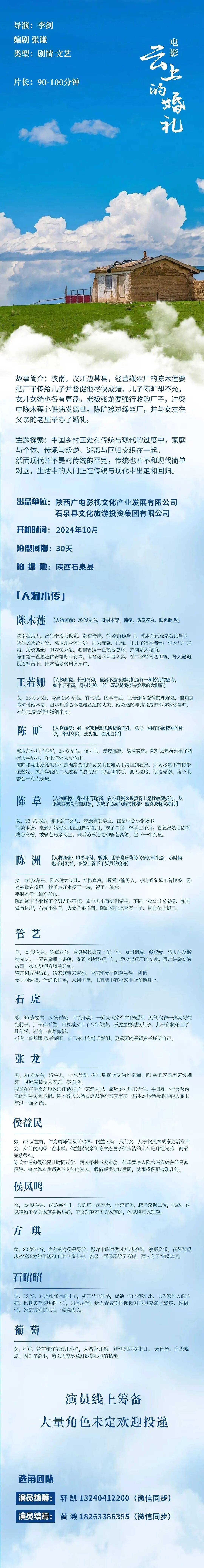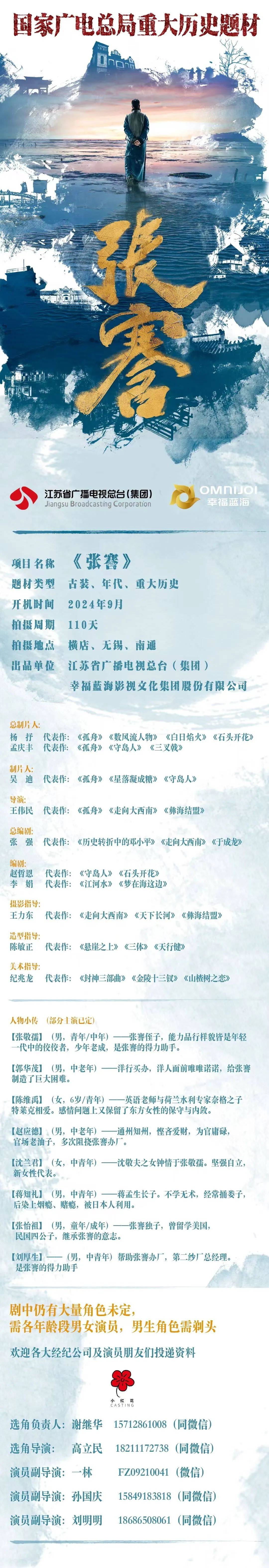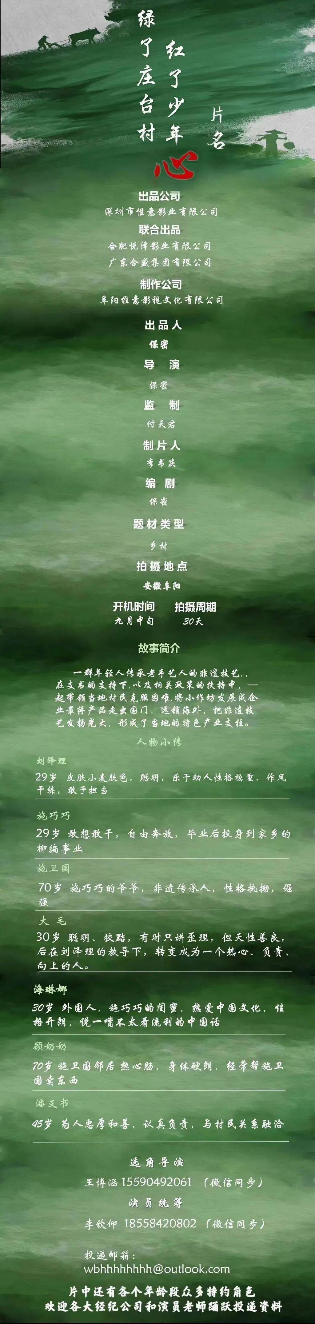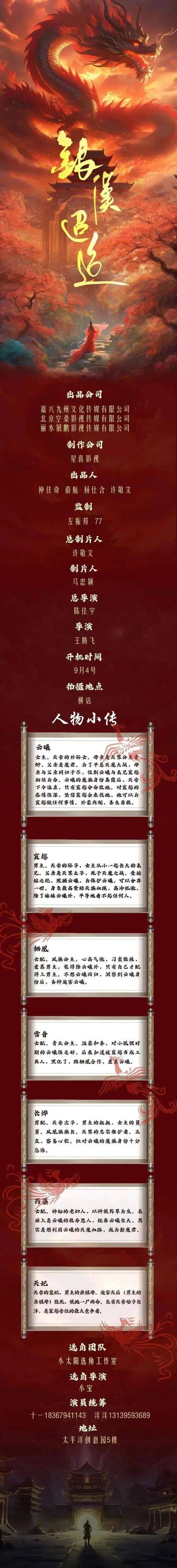 剧中大量角色未定,欢迎各大经纪人及演员老师们投递资料。