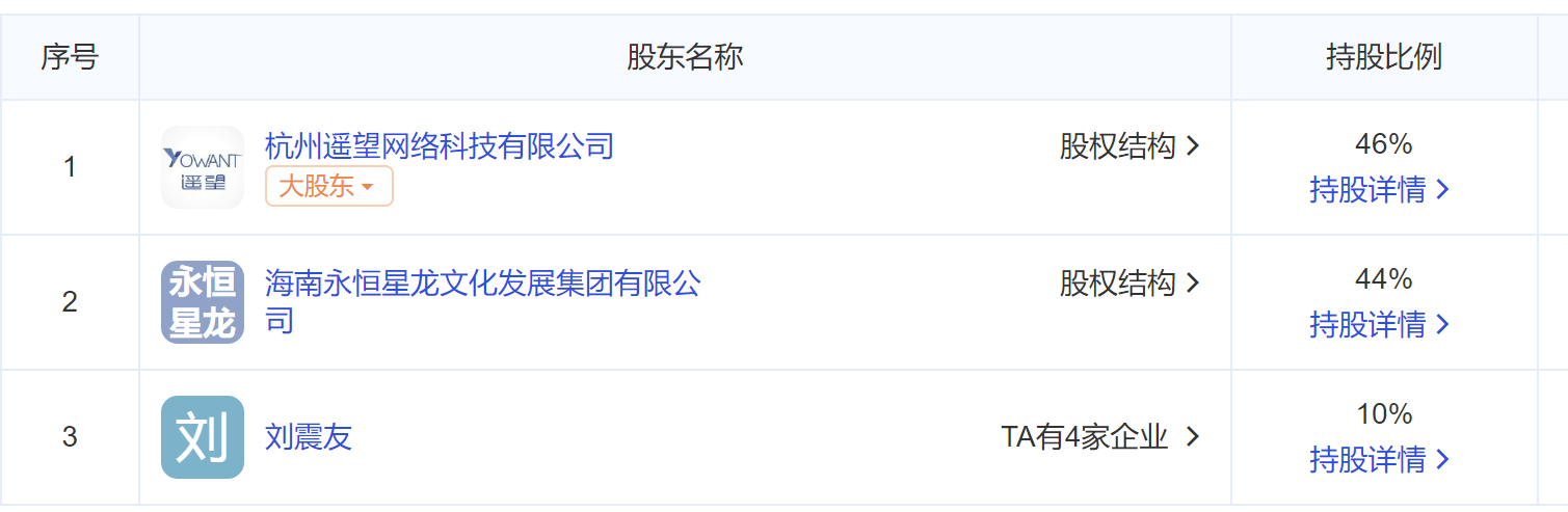 这一点从节目出品方构成就能看出来。《跟我走吧》由杭州遥望网络科技有限公司、杭州望望龙网络科技有限公司出品,前者是上市公司,也是后者的股东,而望望龙网络科技,黄子韬挂名董事,同时他的永恒星龙持股比例44%,妥妥的大股东,是公司的实际控制人。