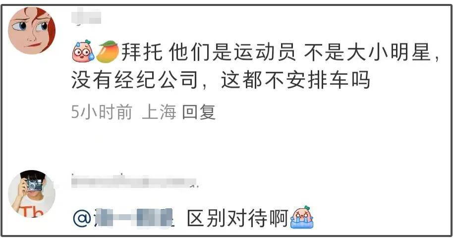 接下来,更令网友无语的事情发生了,梁伟铿的搭档王昶落地之后,同样是运动员,王昶就又有保镖跟着又有专车接送,一整个区别对待。