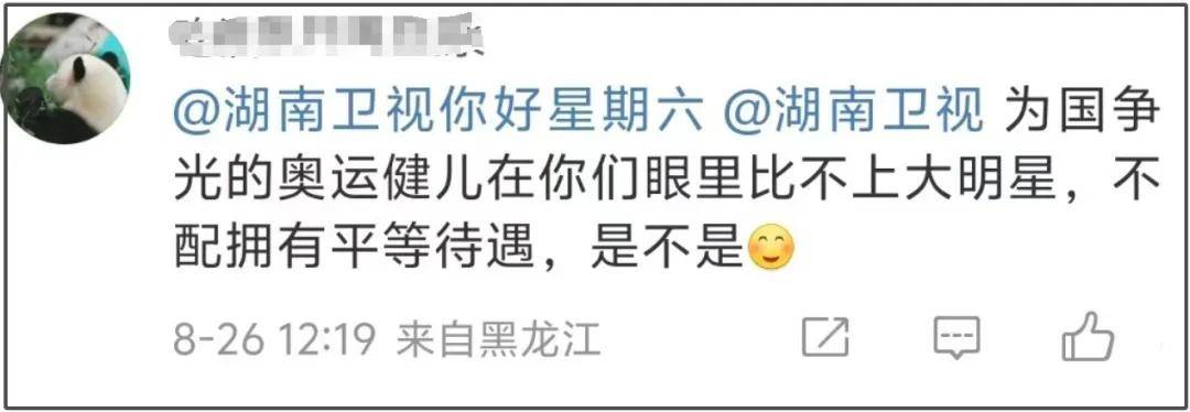 正如网友所说,这次争议本质在于“不患寡而患不均”,湖南台不是第一次被质疑拜高踩低,也许娱乐圈自有规则,当红大咖可以带来话题和流量,底层小明星自然少点镜头,但是运动员不一样,既然湖南台节目组选择邀请运动员,就应该做好合理安排,无论如何都不该把娱乐圈的不良风气运用到运动员身上。