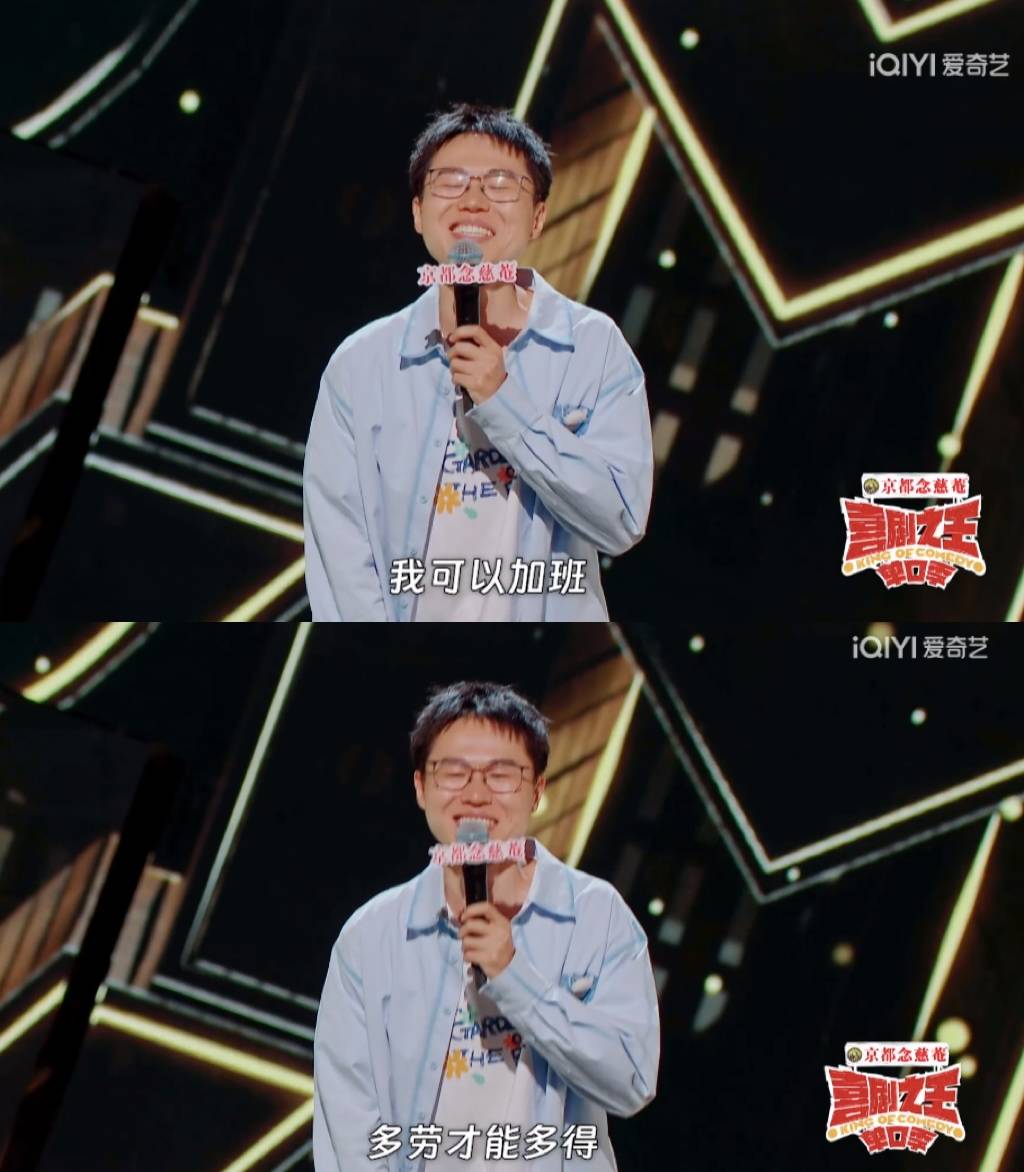 上周,节目迎来阵营火拼赛的下半场。跨界单口喜剧的相声OG阎鹤祥压轴炸场,全程高能。他自曝“单飞”生活并花式吐槽郭麒麟,“我不是来比赛,我是来找人的”,包袱不断,气口连贯,相声里的“说”和“逗”用在单口喜剧的舞台依旧笑梗频出、嗨翻全场。新人于祥宇哲学解读打工牛马的心酸,自嘲“骆驼祥子”,“什么亚里士多德,多劳才能多得”“财务自由才是真正的自由”引发全体打工人共鸣;前HR门腔隔空diss“老板不把实习生当人”“相由薪生”爆笑直击社会痛点;史妍聊到物业工作和踢足球差不多,“不需要啥技术,能抗住骂就行”,i人发狠引人爆笑。