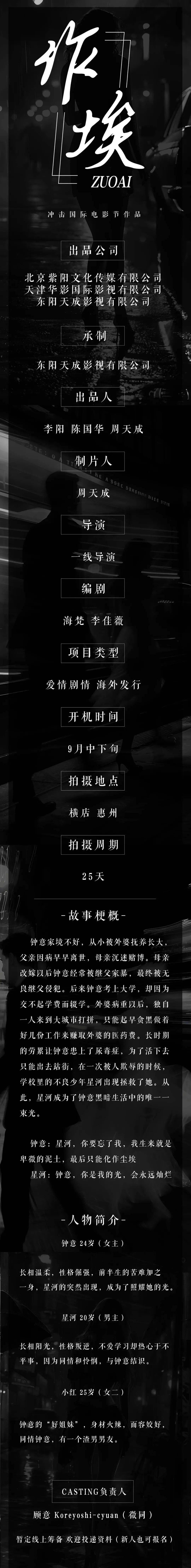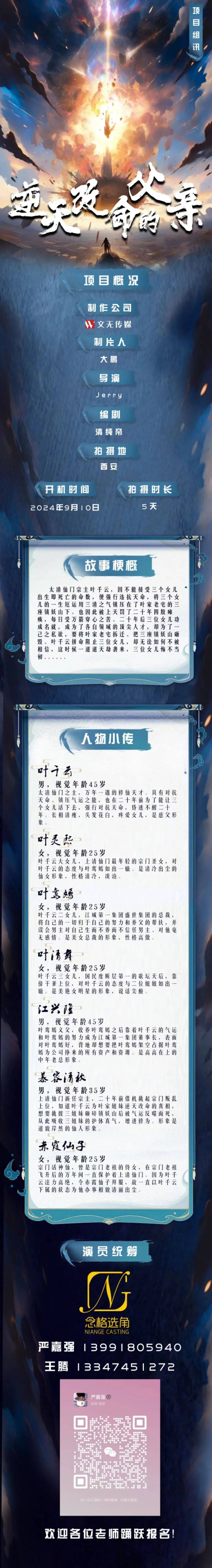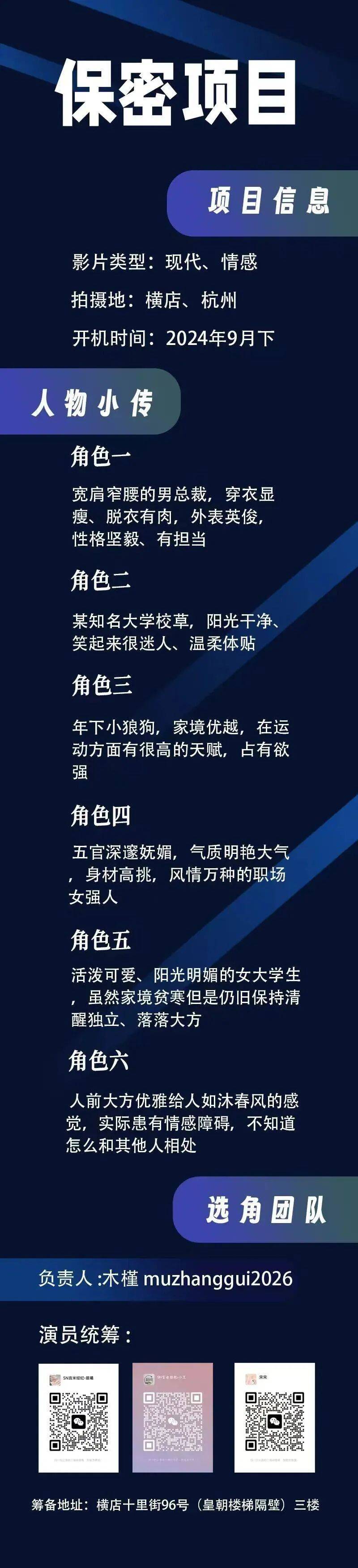 免责声明:戏客Seeker公众号(“本平台”)中全网组讯的信息、内容(“组讯信息”,包括但不限于影视项目名称、项目介绍信息、出品公司信息、导演信息、选角团队信息、拍摄相关信息、联系方式等)均来源于内容信息相关方提供或互联网公开信息。本平台不对组讯信息的真实性、准确性、完整性、及时性、关联性、适用性及安全性提供任何明示或默示的担保。请您谨慎参考或使用组讯信息,并确保您的人身、财产安全,本平台不对您使用或参考组讯信息而造成的后果承担任何责任。