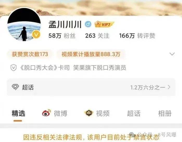 早前,笑果文化的演员孟川曾因言论不当在微博被禁言。