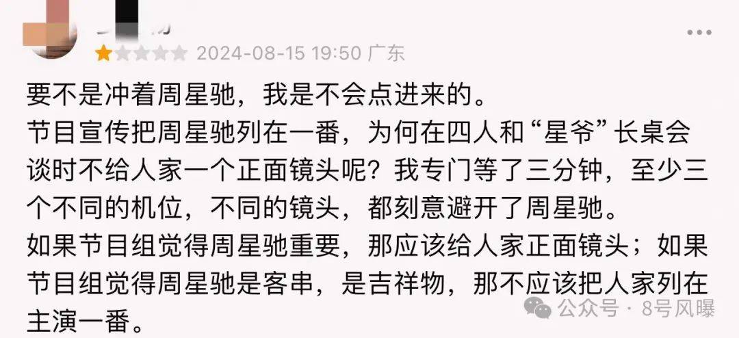 这也被网友批评:“节目组让周星驰客串当个吉祥物,却把他放在一番,不是冲着周星驰都不会看这个节目。”