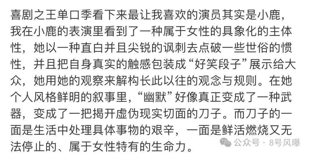 一名观众表示在小鹿身上看到了女性特有的生命力,她的表演有一种属于女性的具象化的主体性。
