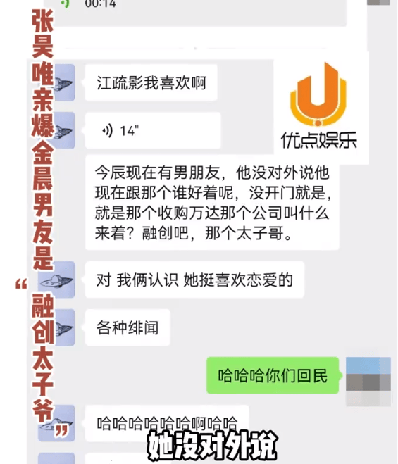 “金晨,金晨在跟融创的太子爷谈恋爱,她还挺喜欢谈恋爱的绯闻也不少”