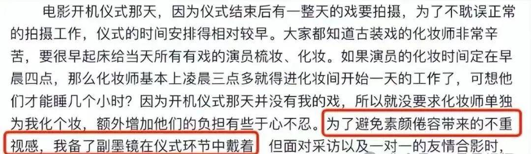带墨镜是因为当天没化妆,怕素颜会给他人带来一种不重视的感觉。伞也是工作人员递的,因为当天下着雨怕自己过多地谦让只会让大家淋的更久,便没有拒绝。