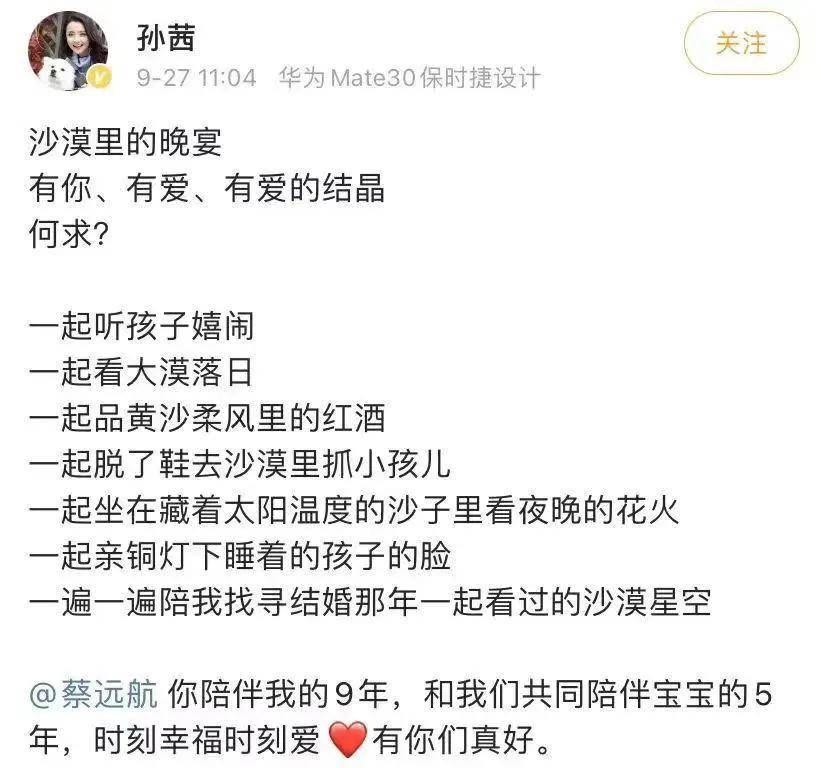 三天后孙茜晒出了一家三口的合照庆祝与老公结婚的第九个年头,还登上了热搜。