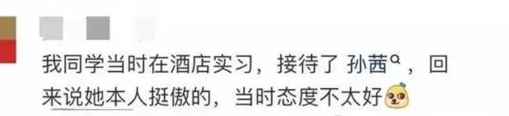 孙茜登上热搜后,有网友提到她的朋友曾接待过孙茜,回来说她本人耍大牌挺傲的脾气也不好。