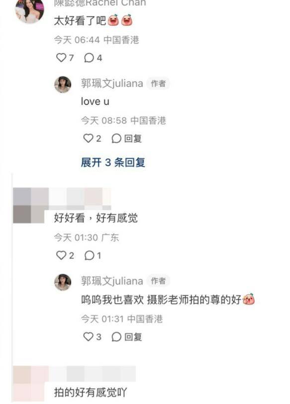 不少网友大赞:好好看,好有感觉、的确靓、身材好好、好有文艺feel、连节目拍档陈懿德也留言大赞:太好看了吧。