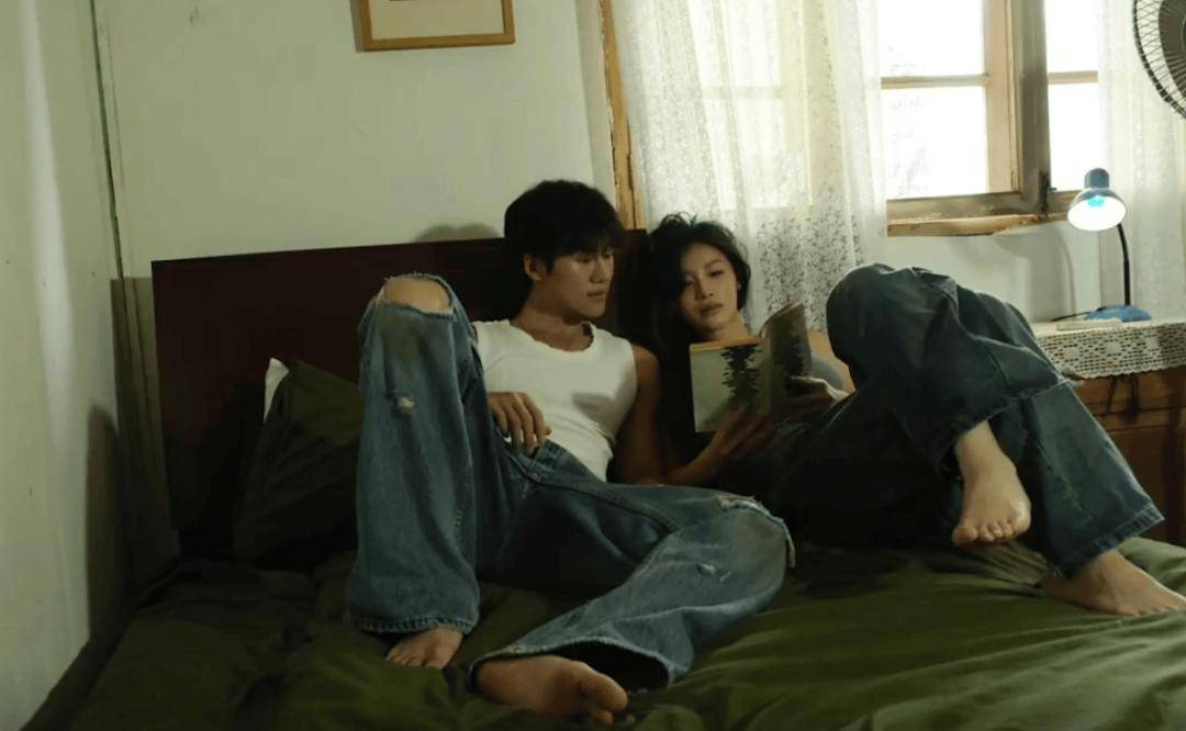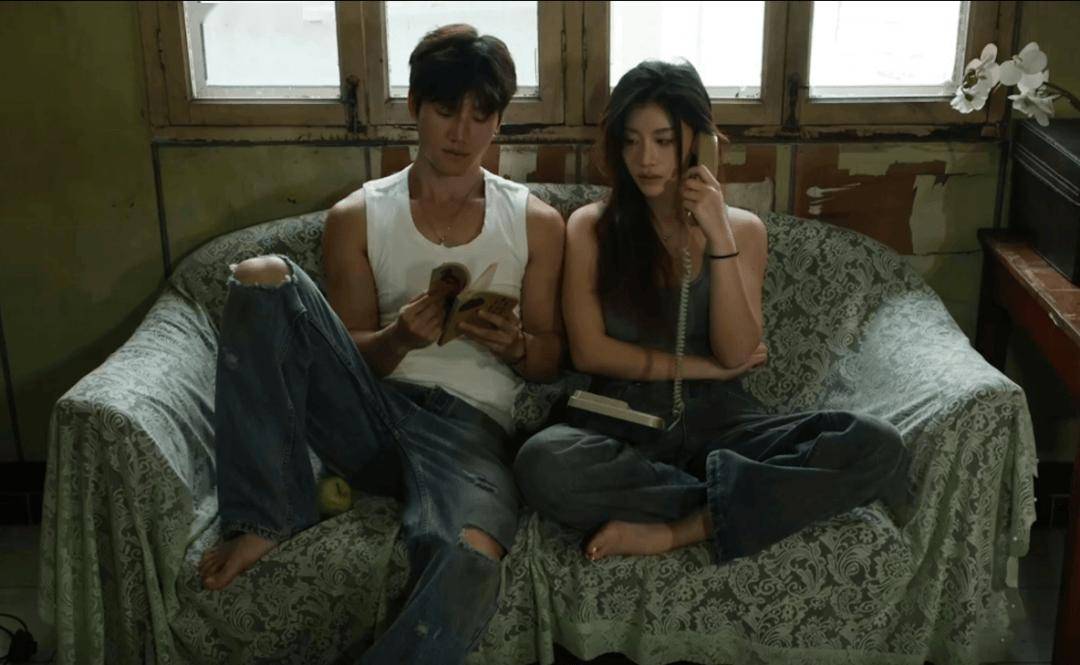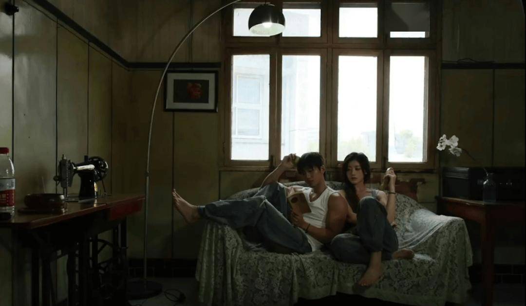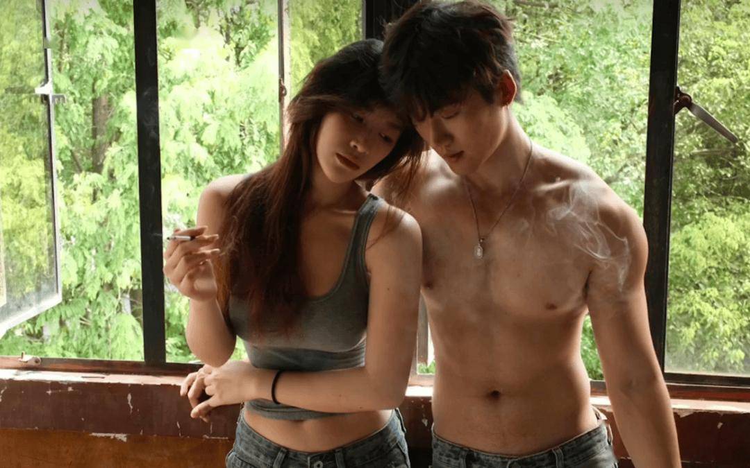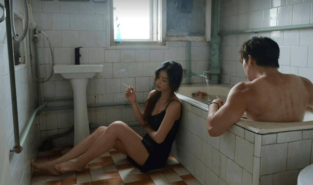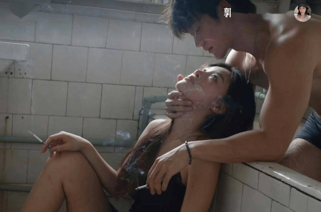 当中浴室一幕最为性感,郭佩文穿上黑色吊带低胸睡衣,与肌肉男在浴室互动,不乏鼻子碰下巴及从后抱着等亲密动作,二人还点上香烟,整个画面充满文艺气息。