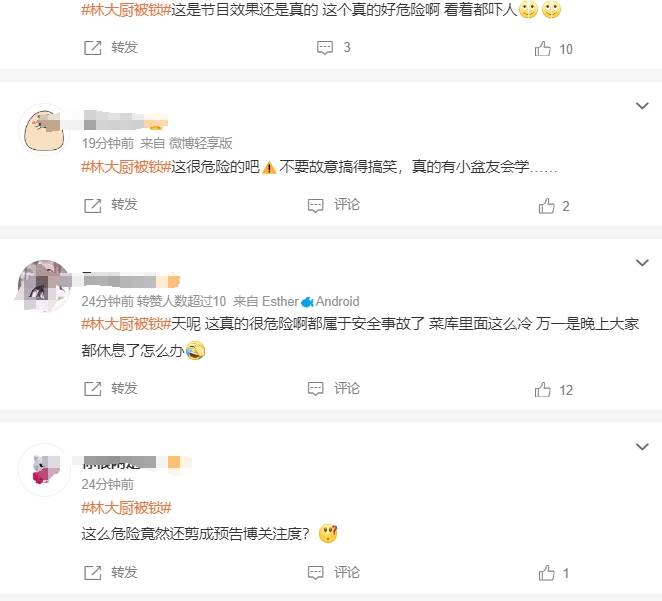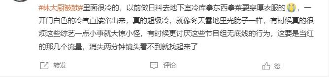 而在节目播出后,林述巍被锁冷藏室这一段非但没有收获好评,反倒引起了极大争议,超多观众指责导演组的做法太冷血,毕竟就算不是冷冻室,也是冷藏室,温度低不说,里面还是密闭的空间,他们真是不担心林述巍出现意外呀,为了点素材如此冷眼旁观,未免太危险。