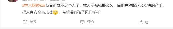 或许是看本季餐厅部分的看点实在太少了,节目组居然剑走偏锋,将“林述巍被锁冷藏室”的遭遇剪成看点不说,还配上了非常欢乐的音乐,导演组做法引发了众怒。不少观众质疑难道素人的命就不是命?换做是其他几个流量明星被锁在里面,想必节目组导演早就把他们放出来了吧。