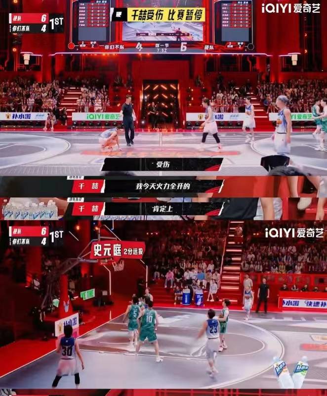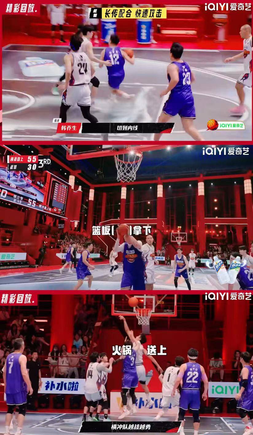 第一场“你们不队”与“硬队”的比赛中,双方你来我往,互不相让。马佳变成“马达”,化身“全场最强发动机”持续稳定输出,千喆内线变向突围打得对手措手不及,史元庭四罚三中、持续发力,杜容一压哨补球为队伍再度拿分,卡斯柏无死角盯防为队友创造进攻机会。两队成员为冲击总决赛都拿出了全部的实力,球场上高光频现,任豪、邓超元、姜钧馨等多位球员三分球接连命中,高燃氛围引燃全场热情。随着比赛激烈地进行,两队球员的心态和体能都达到了极限,嘉宾们不断在赛场上不断突破,为了团队的荣誉坚持到最后一刻,挑战自己的极限,彰显出团队之间的凝聚力,深深地感染着现场以及屏幕前的观众。