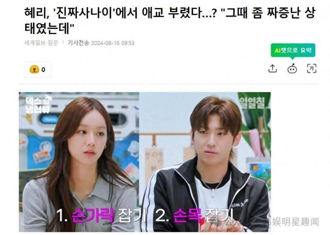 韩国知名女星,女团Girls Day出身的演员李惠利,透露了在综艺节目《真正的男人》中,成为热门话题的场景背后的故事,该节目的一段场景使她一举成名。