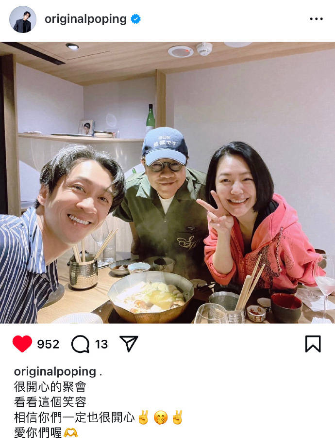 搜狐娱乐讯 8月13日,陈汉典在个人社交账号晒出了和蔡康永小S的合影,照片中三人正围坐在一起吃火锅聊天,小S身穿一件粉红色外套,比耶灿笑,三人的友谊令人羡慕。