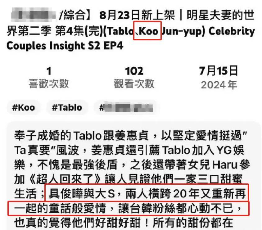 而且说是20多年真爱,但具俊晔在这期间恋爱、相亲也没停,还上过韩国的相亲综艺,中间也谈过几个女朋友。当初还是他先和大S提的分手,现在又想起来营销20多年真爱了?网友吐槽无非还是为了挣钱。