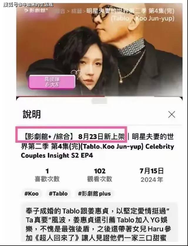 那是具俊晔独自上节目,反响并不高,而这次是大S具俊晔的夫妻首秀,也是大S复出的第一个节目,大S本人很重视。