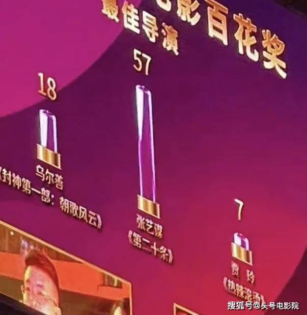 最佳导演奖,贾玲《热辣滚烫》获得的票数是7票,远远低于张艺谋50票,也比乌尔善少11票。