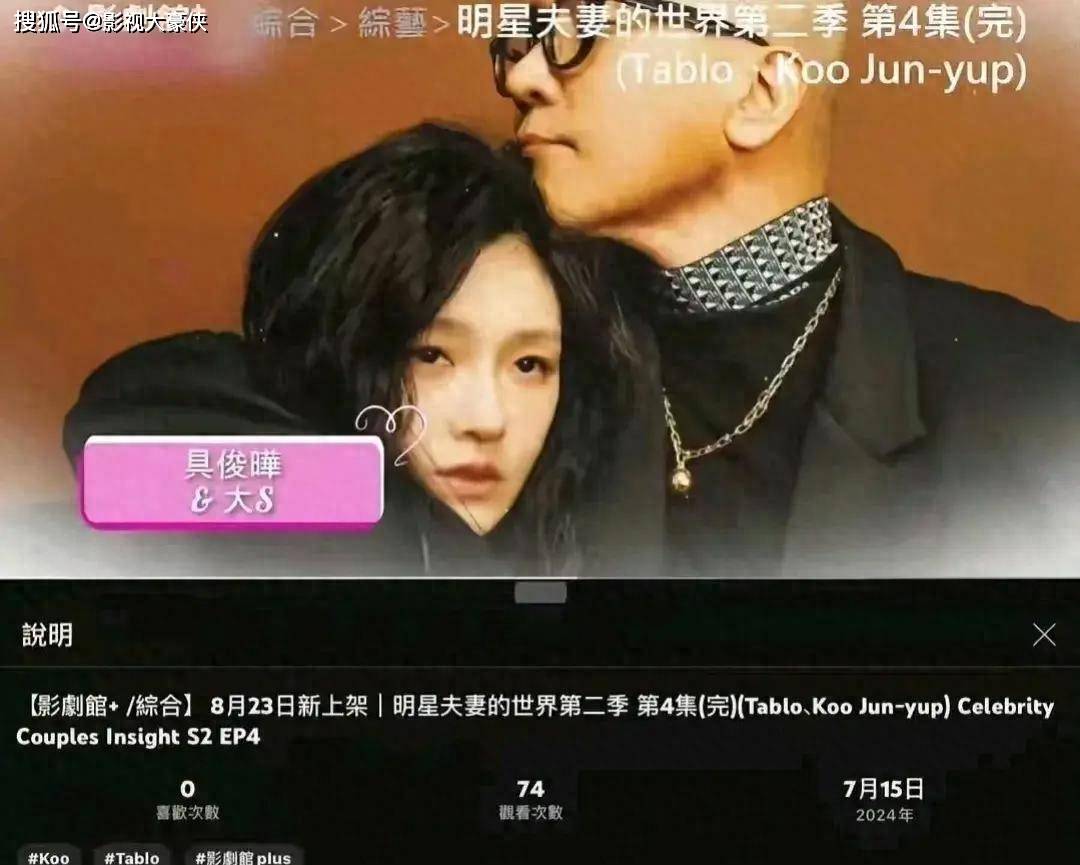 台媒爆料,大S参加了一档韩国综艺节目《明星夫妻的世界》第二季。这个节目将于8月23日正式上架。